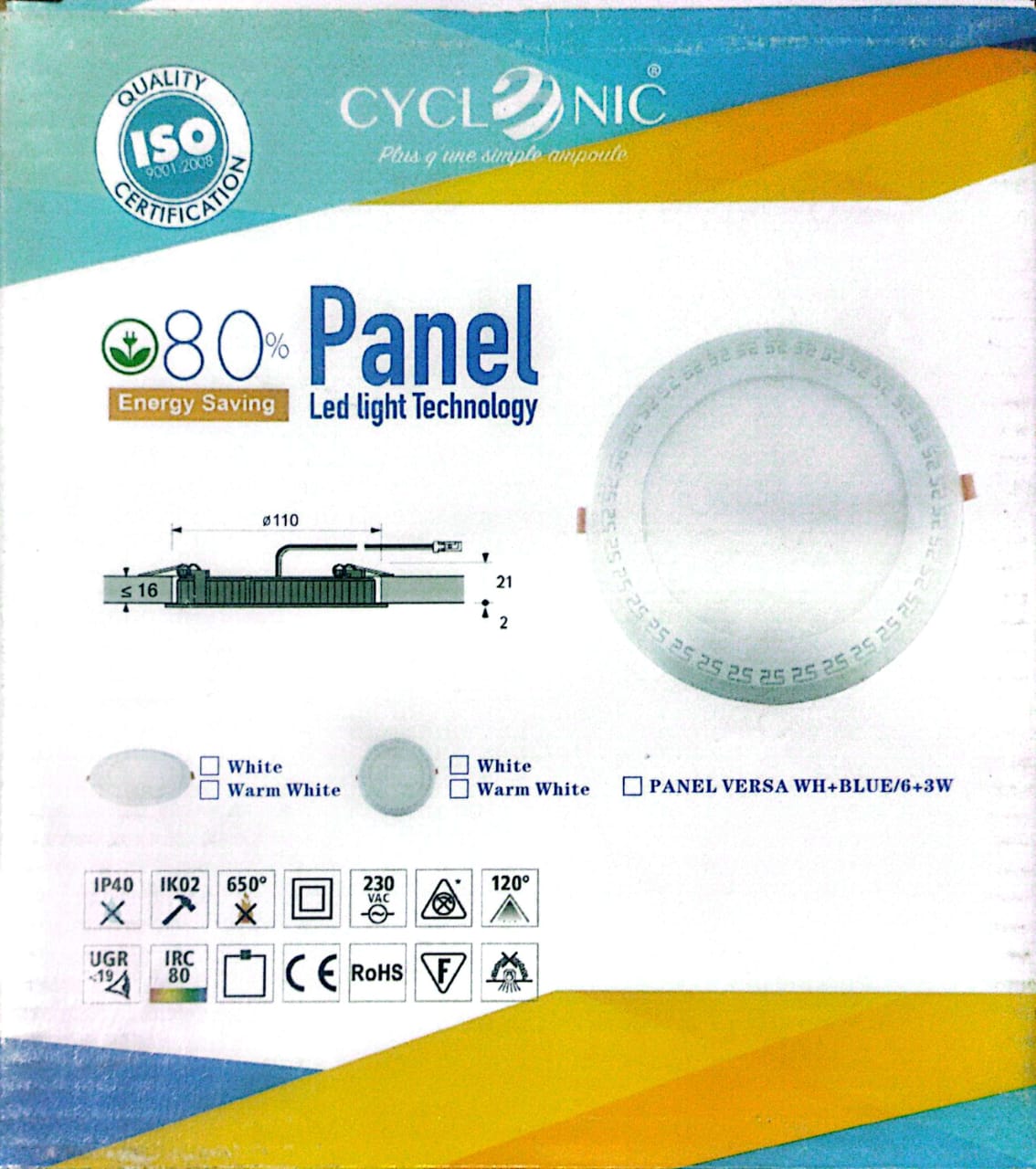 LAMPE LED PANEL 6+3W WHITE+BLUE ENCASTRE ROUNDE