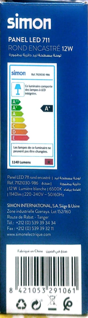 LAMPE PANEL LED ENCASTRE 12W ROUND SIMON