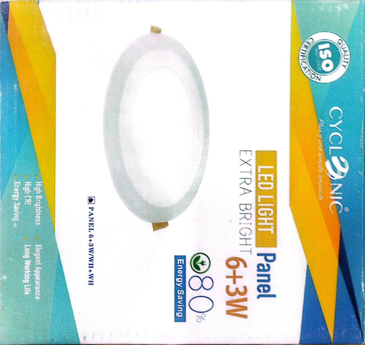 LAMPE LED PANEL 6+3W WHITE+BLUE ENCASTRE ROUNDE